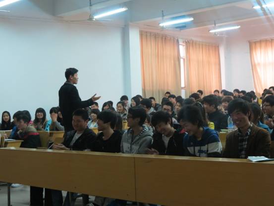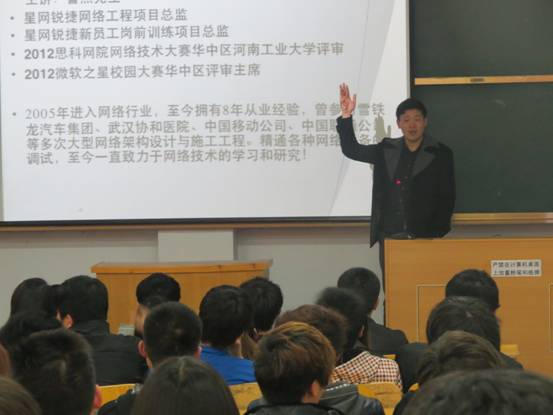 下午3点,特邀嘉宾——星网锐捷CNTD项目河南基地总经理鲁杰来到明德楼南一号多媒体与网络相关专业的学生见面并作报告。