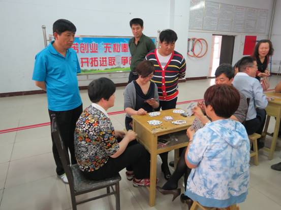 象棋比赛中,老师们凭借自己沉稳的心态、老练的技术,在棋盘上大显身手,棋子与桌面碰撞的声响,更是使现场气氛平添了几分紧张,比赛激烈异常。比起紧张的象棋比赛,气氛活跃的斗地主显得轻松、欢乐,老师们在比赛中都不计较输赢得失,无一不带着欢乐的笑脸,气氛融洽、和谐。