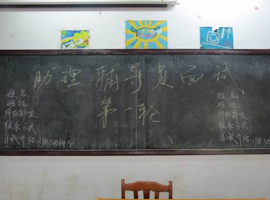 本年度助理辅导员选拔共进行四轮筛选,第一轮面试地点定于学院致知楼一楼北合堂,面试官由www.87365.com团学会主席团以及各部室部长担任。