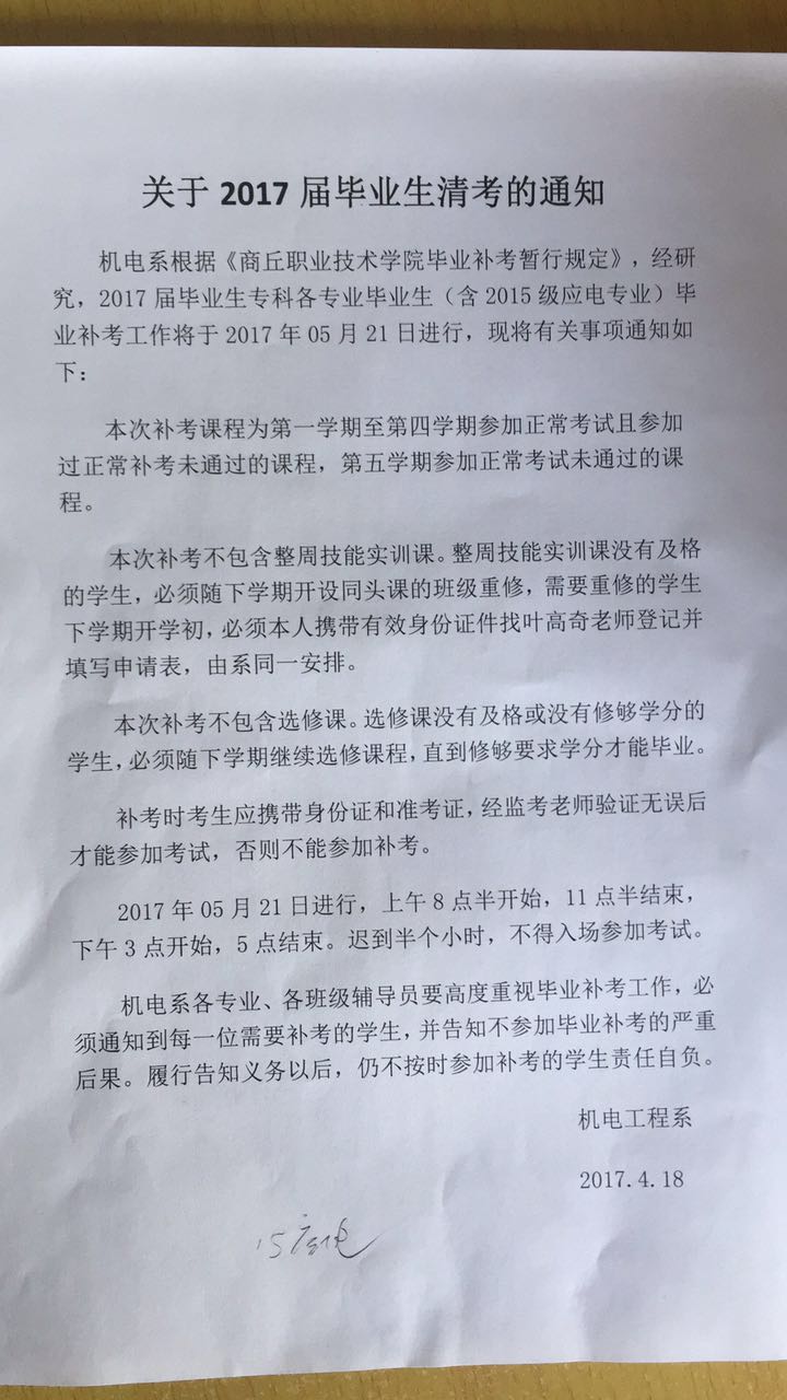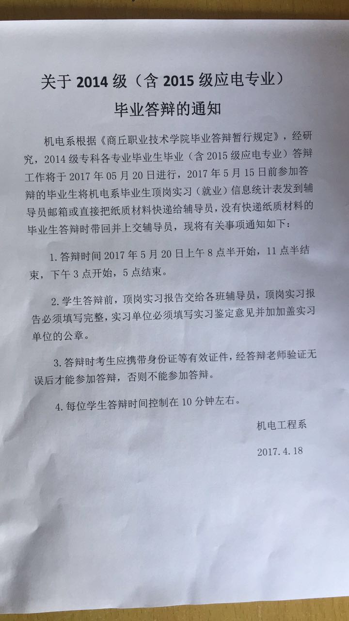 www.87365.com17届毕业生清考与14级(含15级应电专业)毕业答辩通知