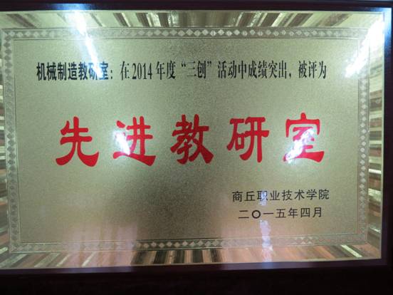 2015年5月7日,商丘职业技术学院2014年度“三创”活动成绩揭晓,www.87365.com在活动中表现突出,被评为“先进教学管理单位”。